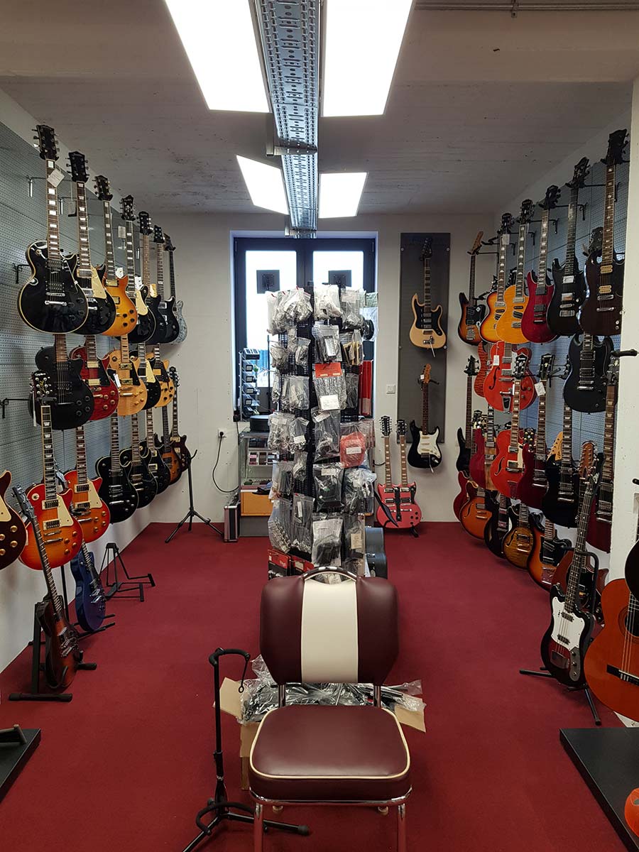 Unser Sortiment umfasst durchschnittlich ca 400 Gitarren, die wir anspielbereit in unserem Ladenlokal ausgestellt haben.